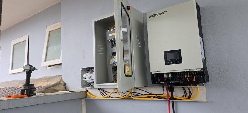 - Công suất pin lắp đặt: 5,9kWp; Sử dụng tấm pin NLMT: 590W Jinko 2 mặt kính, biến tần Lux SNA 6K 1P 230V