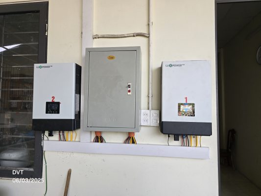 - Công suất pin lắp đặt: 12kW trong đó tấm pin Longi 585w 2 mặt kính Himo X7, biến tần hybrid Luxpower 6kw